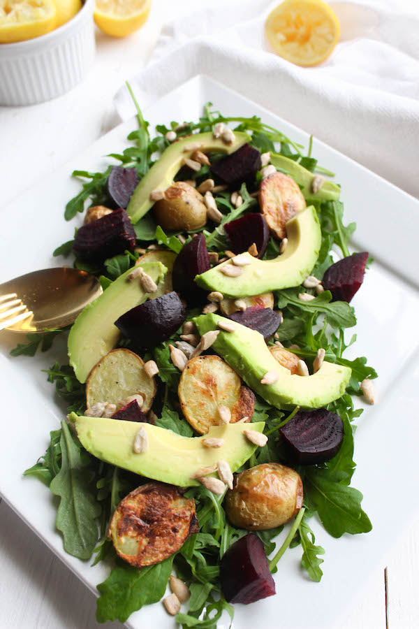 Roasted Beet & Potato Arugula Salad with Lemon Vinaigrette from Pumpkin and Peanut Butter