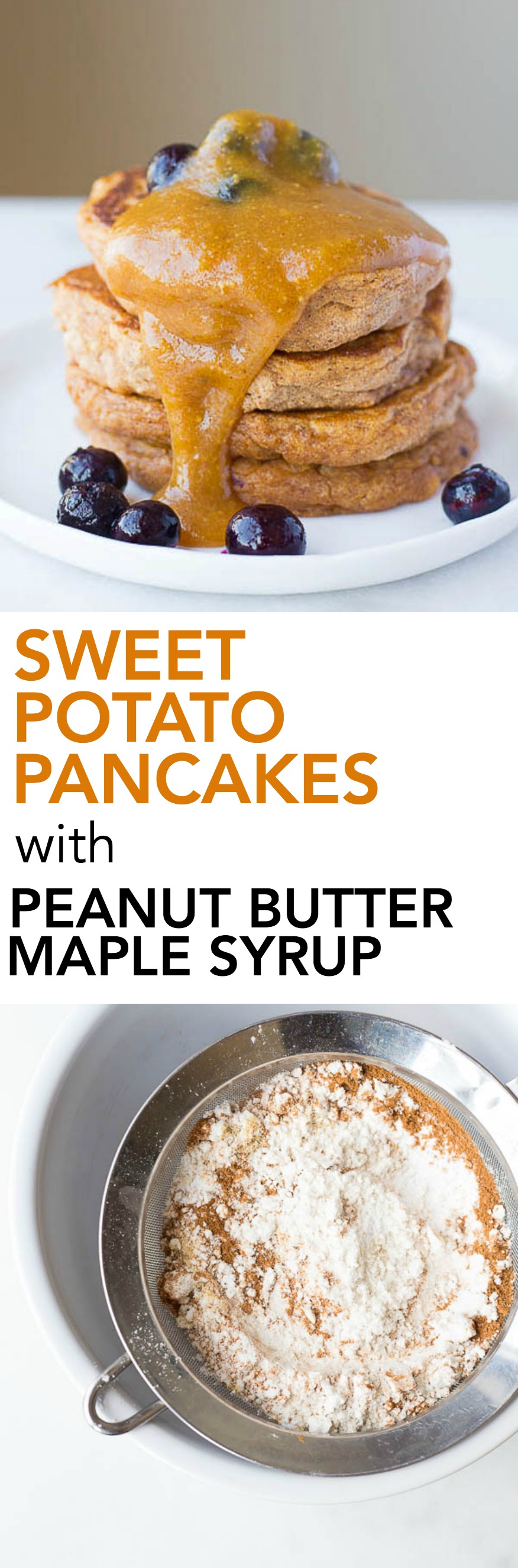 PrintSweet Potato Pancakes with Peanut Butter Maple Syrup