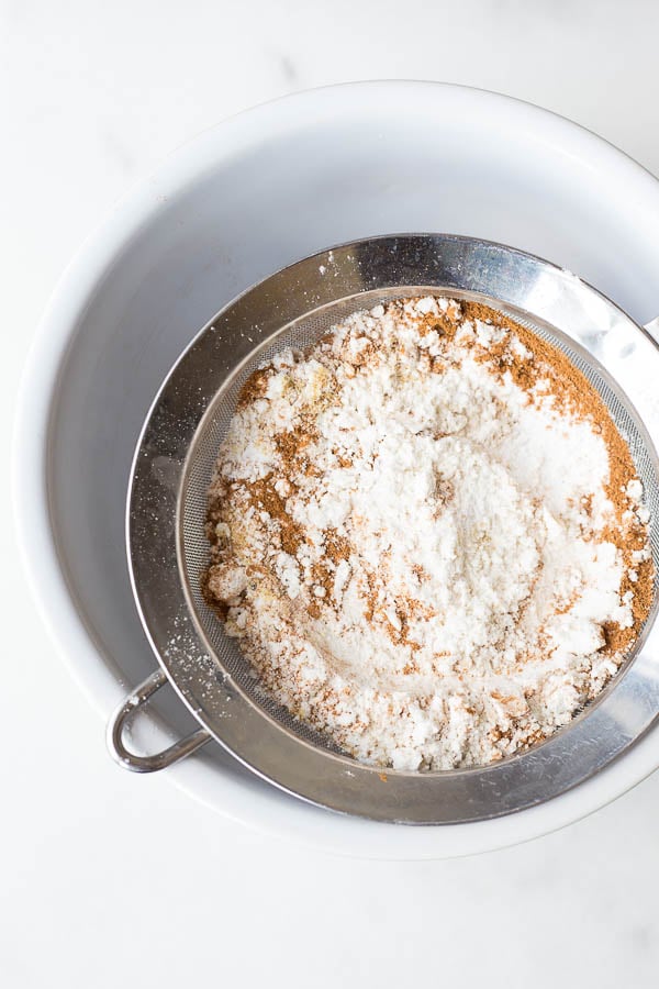 - Make the pancakes: In a medium bowl, sift flour, flax, baking powder, cinnamon and salt.