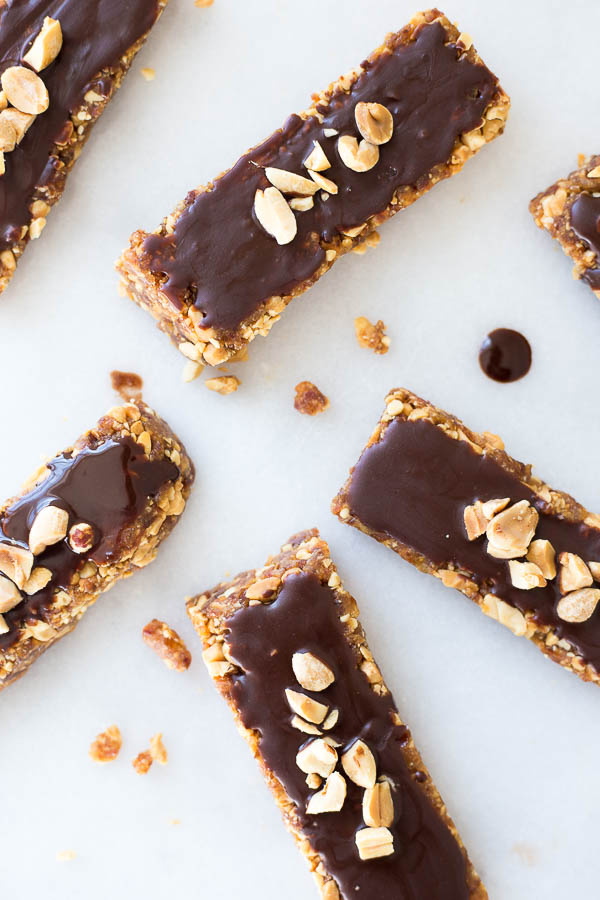 I’m serious when I tell you that they taste like a candy bar. So much so, that I almost called these Healthy No-Bake Snickers Bars. But Mark and I both agreed that “Peanut Butter Cup Snack Bars” really captured the complete and total epicness that is these bars.