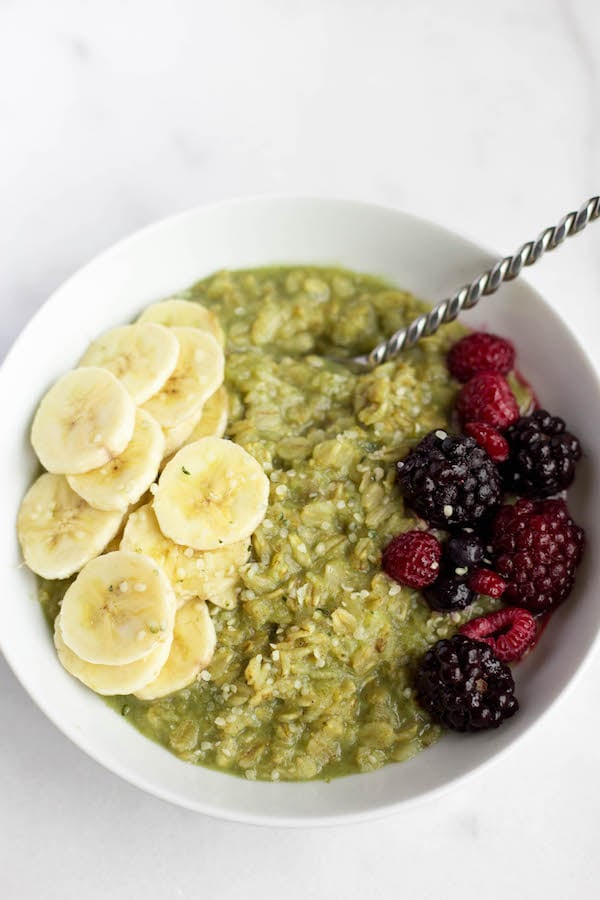 Yes, this oatmeal is green. But I can guarantee you that it tastes 1000% better than it looks. For realzies.