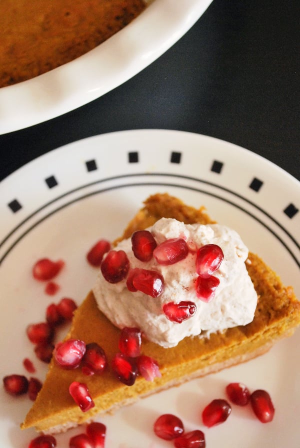 It’s a tradition in the Fooduzzi household to have a big ol’ slice of pumpkin pie for breakfast on Thanksgiving. With this gluten free vegan pumpkin pie recipe in my arsenal, I may just have two. ;)