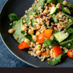 Do you farro? It’s a revelation for me. So much better than quinoa (IMO!) and just a lil more fancy than rice. It’s so chewy, so toothsome, and just really great in a salad like this. It’s a whole grain wheat, so it’s not gluten free, but it is oh-so very delicious.