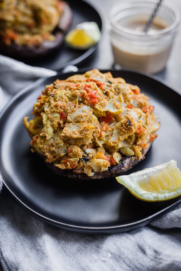 PrintVegan Crab Cake-Stuffed Portobellos