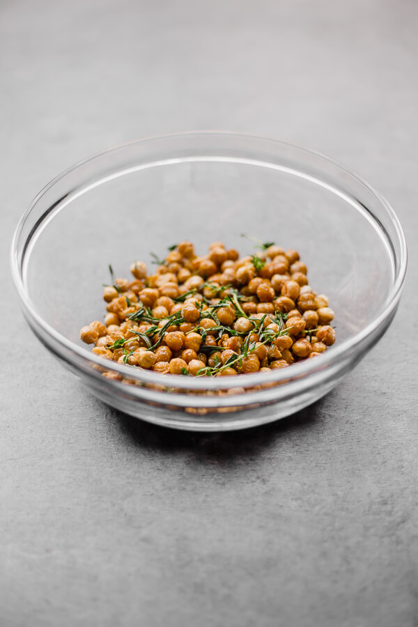 - Liberally toss your drained and dried chickpeas in arrowroot powder (cornstarch should also work!). It gives the chickpeas a light, crunchy coating that is just my favorite thing ever.