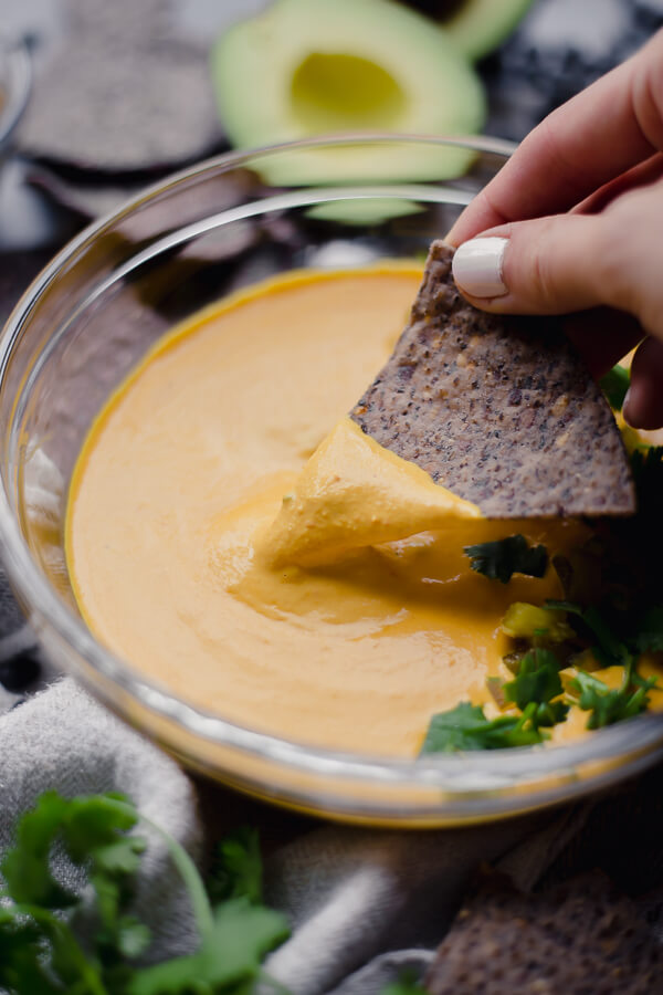 This is so so sooo good! As a diary fiend, I really couldn’t tell the difference between queso and this ‘queso’. I can’t wait to make it myself.