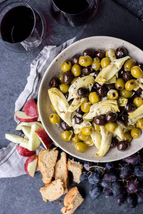 So. Marinated olives are one of my favorite foods. I realize that olives are a super alienating food (if you’re an olive hater, here’s another epic Italian appetizer recipe that can keep you occupied until I post a new recipe next week), but I come from a household full of olive lovers.