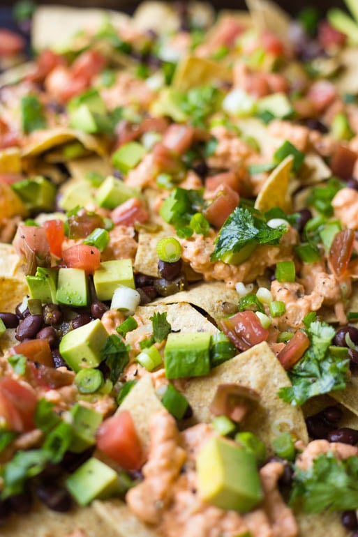 Fun fact: I secretly love when tortilla chips get kind of chewy after sitting under dip for 8 hours. How do I know this? I shot this recipe at 9am. No way was I having nachos for breakfast. It would have been delicious, but I knew I’d come to regret it.