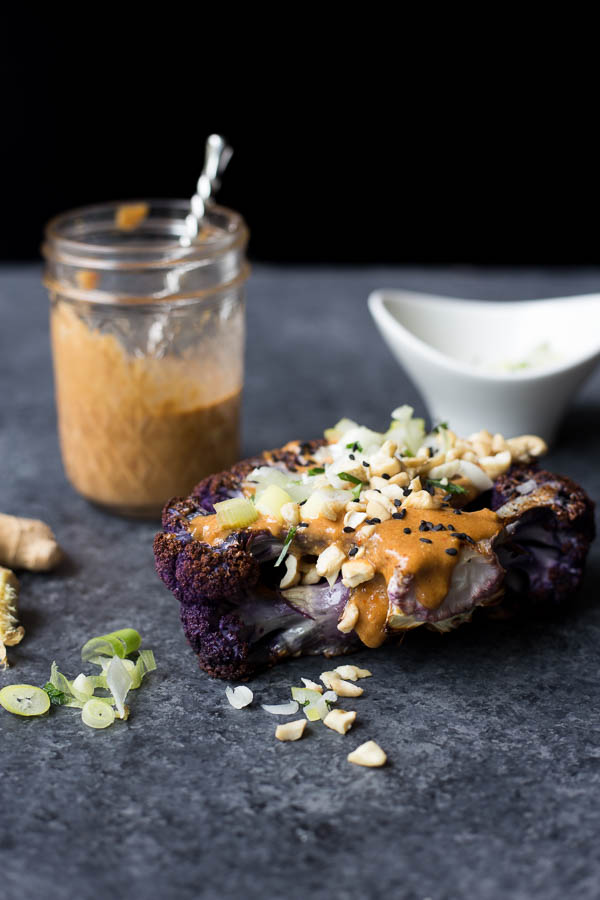 And then the peanut-centric sauce. You guys love this sauce as much as we do! I’ve used it on so many recipes here in the past – zucchini noodles, burrito bowls, quinoa, tacos. But these cauliflower steaks really highlight its flavors. It’s made with only a few ingredients (peanut butter, ginger, garlic, Sriracha, soy sauce, honey / maple syrup, water), and it couldn’t be simpler to make. Just mix and serve!