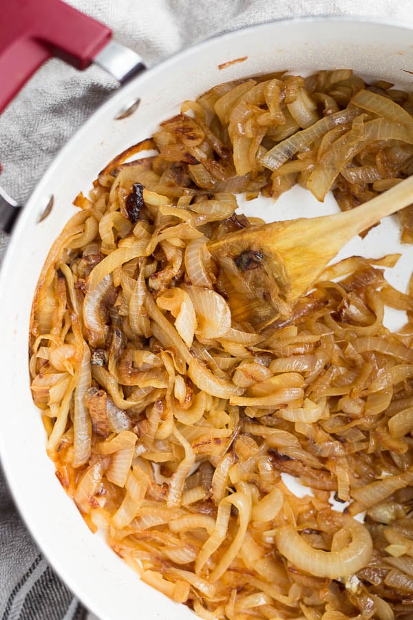 And then. The caramelized onions. I would cover my entire life with caramelized onions if it was socially appropriate. I love them. So much. We caramelize a whole TWO pounds of white onions for this soup. So you know it’s going to be filled with deliciously sweet caramelized flava. Omg yes.