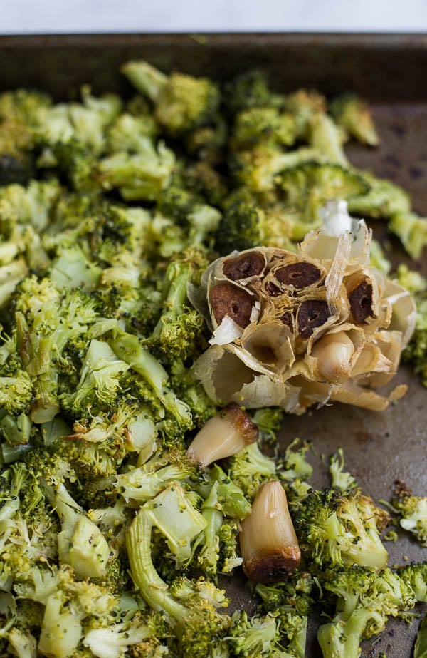 Like most delicious things, it starts out with roasted broccoli. If you haven’t gotten on the roasted broccoli train yet, make this your invitation to do so NOW. Roasted broccoli is so much sweeter and mouthwatering-er than boiled or raw broccoli. I can’t believe I love roasted broccoli enough to call it “mouthwatering,” but that’s where we are and I’m so not mad about it.