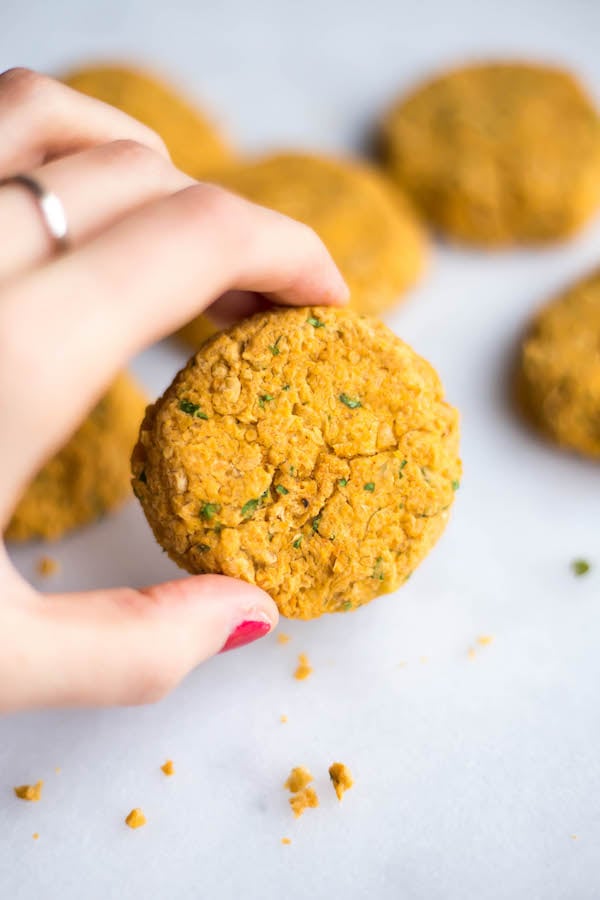 *I like my falafel to have some texture, so I got the mixture fairly smooth with a few chunks. Feel free to blend until smooth if desired. If you’re going that route, you’ll probably need additional oat flour to bind it all together.