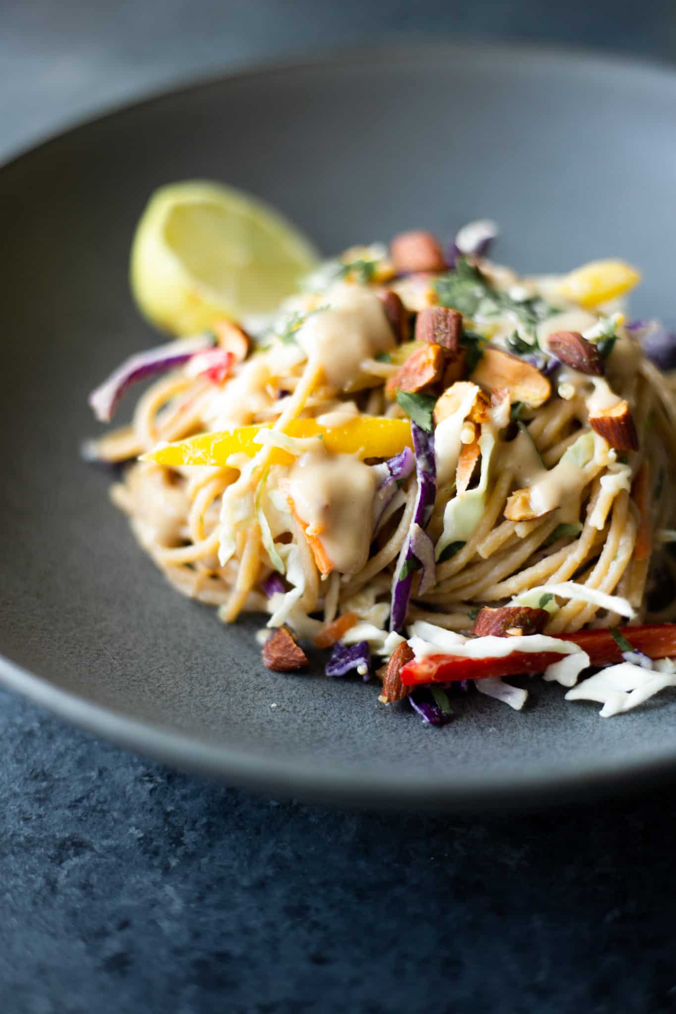 *In the photos, I served the sauce on a warm noodle dish with bean-based noodles, cabbage, thinly-sliced bell peppers, cilantro, and toasted almonds!