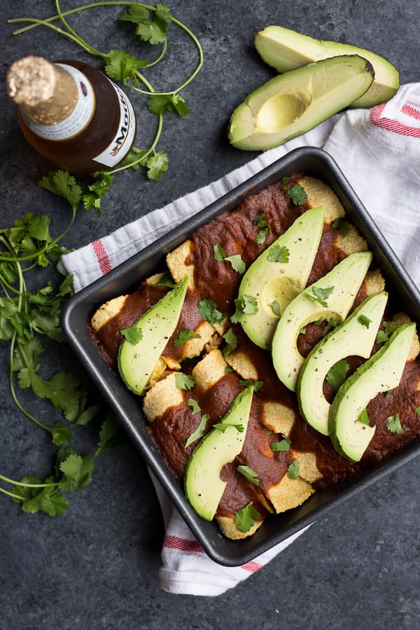 A simple from-scratch enchilada recipe perfect for Cinco de Mayo! Naturally gluten free and vegan.
