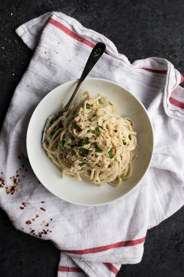When served this for dinner, Mark said (and I quote), “Had you not told me this was vegan, I would have just thought you made normal alfredo for dinner.”