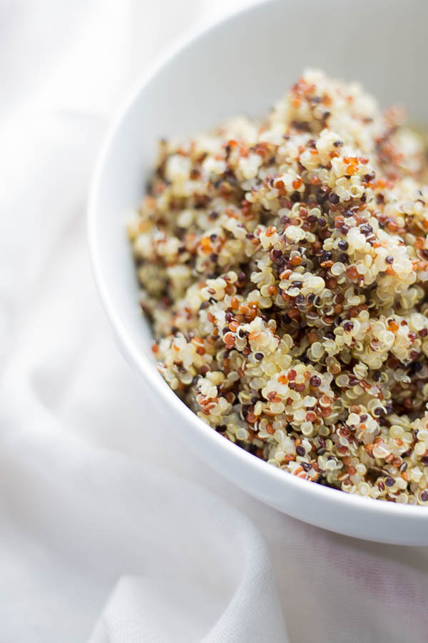 You can really use any grain (or pseudo-grain) that you want here. I’ve actually grown to really like quinoa when it’s mixed with other ingredients. It lends a toothy bite and a bit more heft to this otherwise super light and refreshing salad!