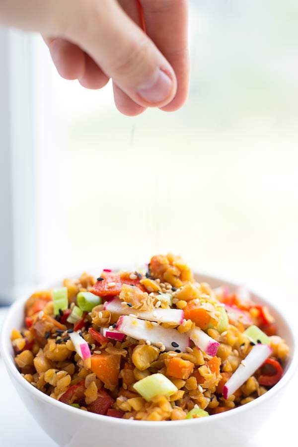 Love this idea of healthier, high-protein fried rice!! Totally coming over to crash for dinner next time I’m in the area ;)