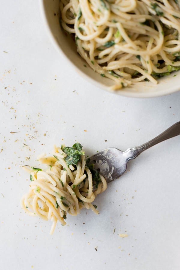 Best part? This recipe is totally and completely gluten free and vegan. You can totally add some cheese to your pasta if desired, but I think it’s plenty creamy and decadent without it.