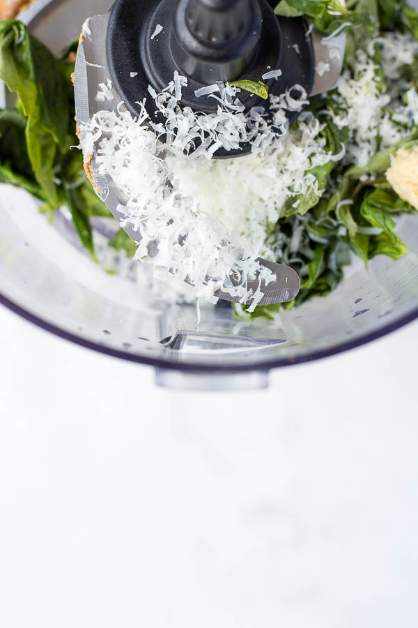 SO. There was a ripe avocado on our counter, and I went ahead and tossed in half. It made this pesto so dang creamy, dreamy, and beautifully green!