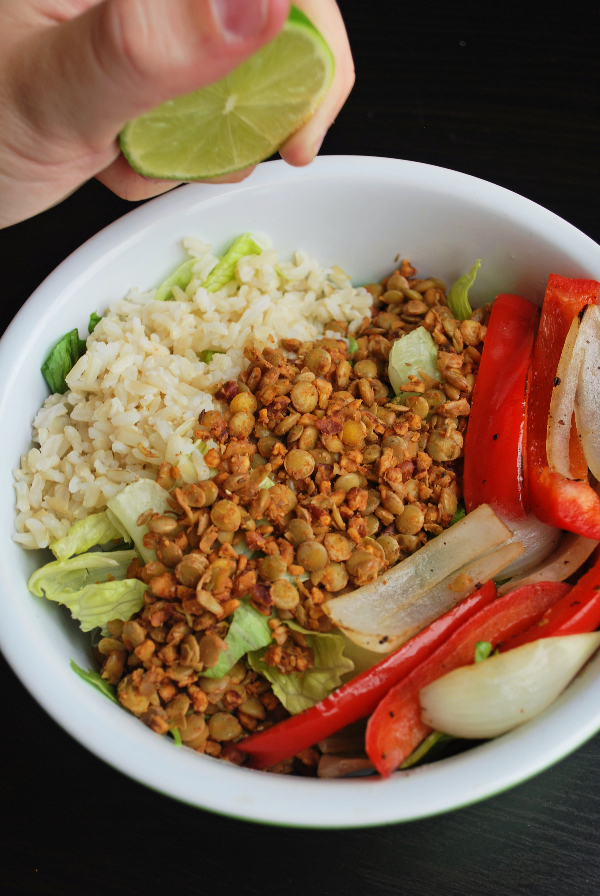 And the possibilities are totally endless. Want tacos? This Lentil Pecan Taco Meat will fit perfectly inside a cozy tortilla. Fancy some fajitas? Sautée up some veggies, boil some rice and beans, and go.to.town. Nacho lover? Mark swears by throwing this mixture on top of some corn tortillas with some cheese and salsa. Or, you could make the classic taco salad with me, topped with all the veggies you could possibly dream of. Um, yes please.