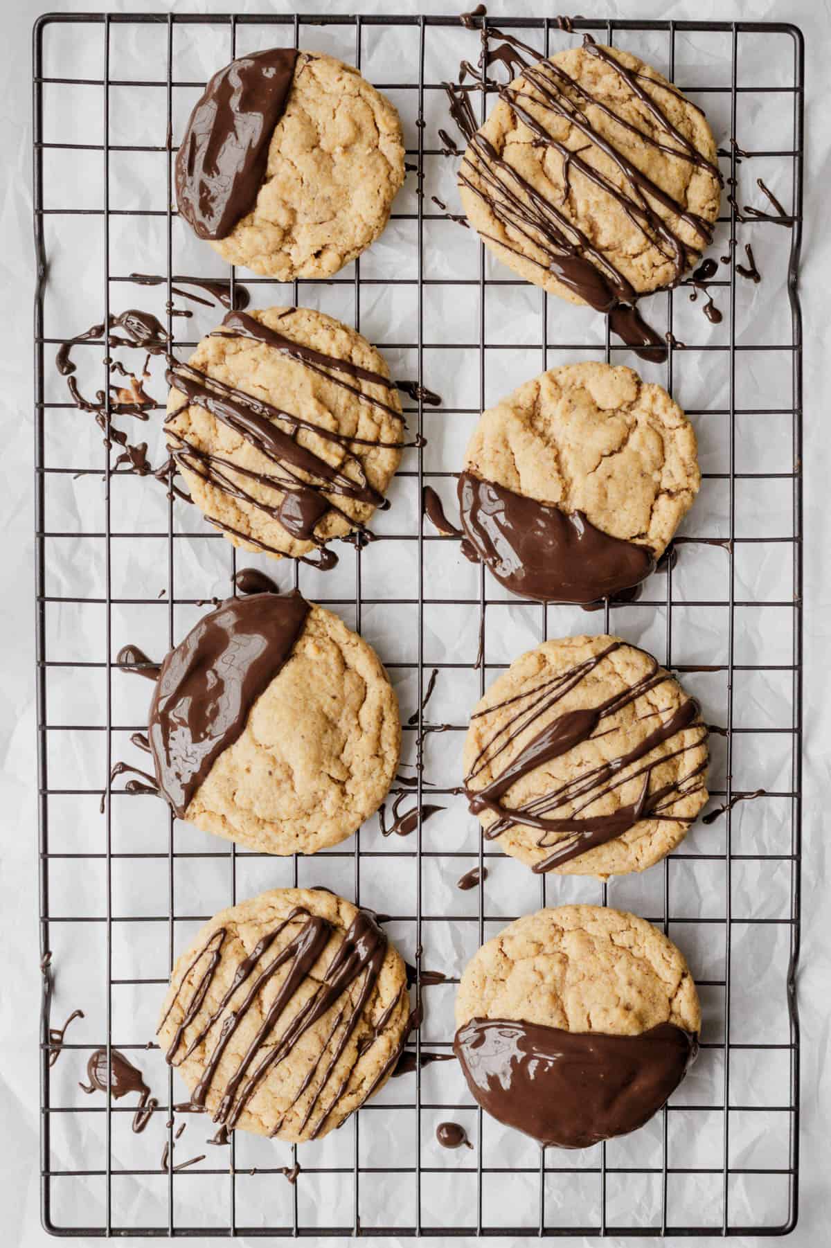 - Meanwhile, melt your chocolate chips and coconut oil (I used a microwave with 30-second bursts). Drizzle chocolate over your cookies with a spoon, allow to set in the fridge, and enjoy!