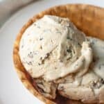 A churned vegan ice cream recipe inspired by stracciatella gelato…but with a peanut butter base! It’s creamy, rich, and speckled with chocolate bits!
