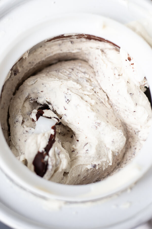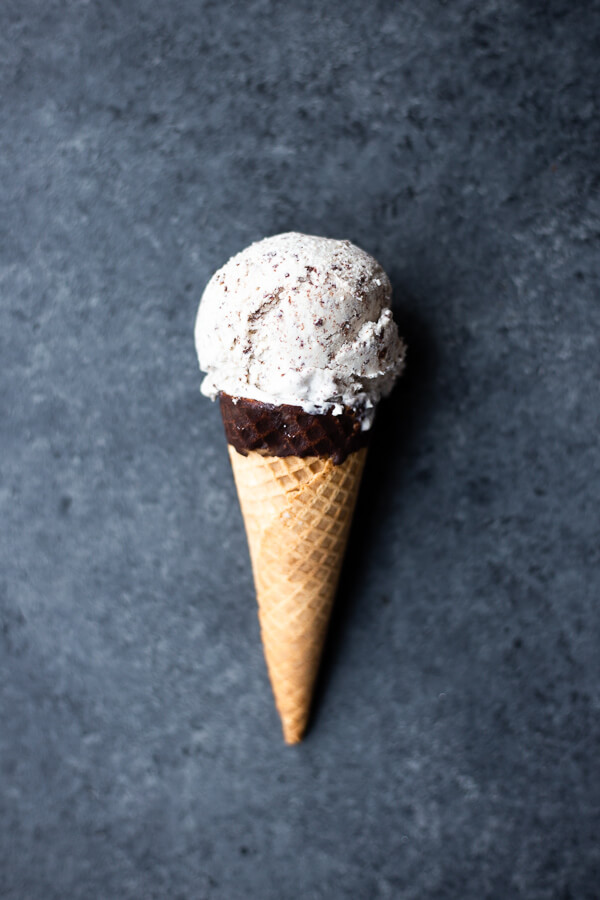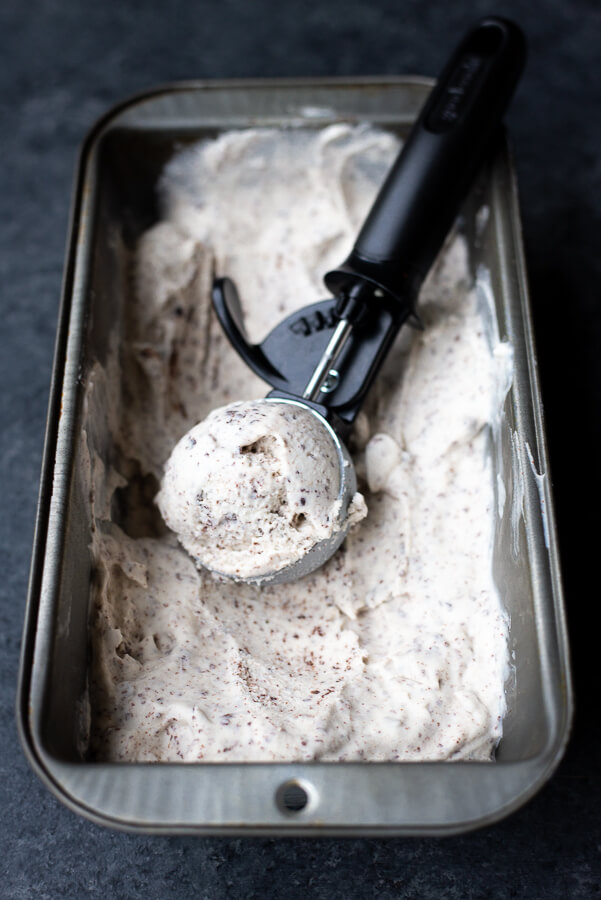 You’ll need an ice cream maker, but the resulting ice cream is SO creamy. Again, I really really prefer eating this ice cream straight from the ice cream maker, but it can be frozen and thawed to be eaten at a later date. Maybe even give it a quick blitz in a blender?