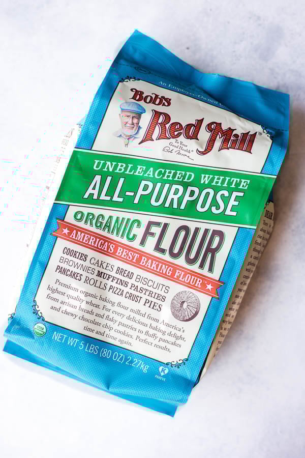As you read at the top, this post is written in partnership with Bob’s Red Mill. We’re using their Organic Unbleached White All Purpose Flour, which is a must during the holidays! It’s unbleached (AP flour is sometimes bleached to make it whiter), unbromated (bromate is sometimes added to AP flour to improve elasticity, but it has also been linked to cancer), and unenriched, so you’re getting true, 100% wheat flour with BRM!
