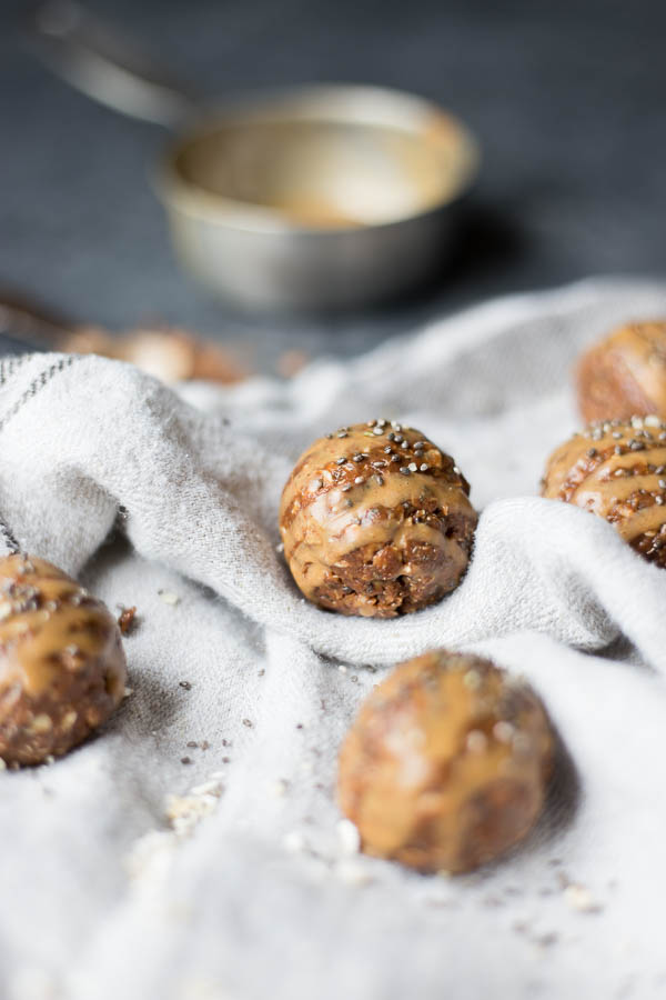 - TOPPING: Mix peanut butter and coconut oil in a small bowl. Drizzle over cold bites, and sprinkle with chia and/or hemp. Keep your bites in the fridge in an air-tight container.