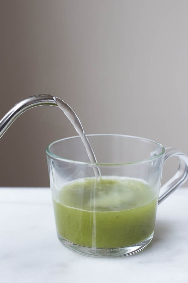 But if you don’t want to fork out the moola for some matcha, do not fret! You can easily sub a regular green tea bag in this recipe. My favorite favorite green tea bags are the ones that I buy from Costco, and they actually have some matcha in them!