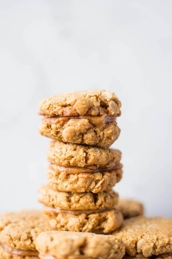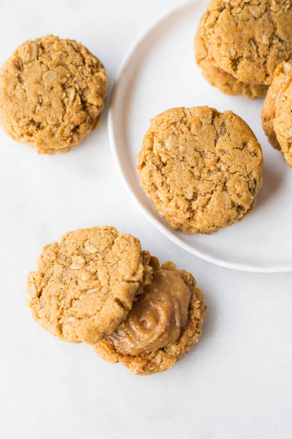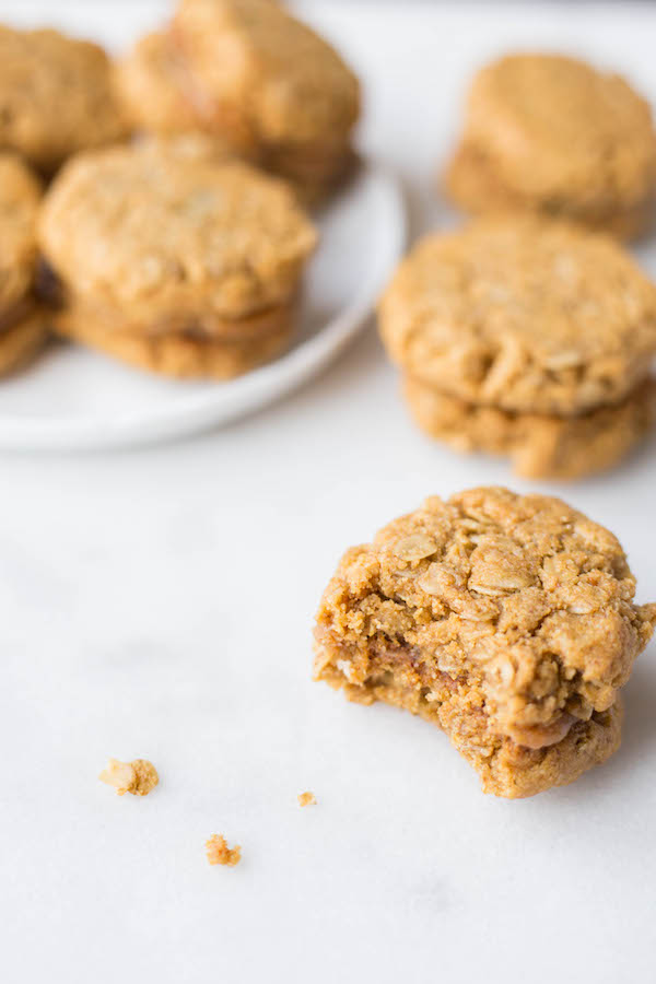 Those powers of be over in Girl Scout Cookie Land really know how to speak to my soul. A creamy peanut butter filling sandwiched between, not one, but TWO perfectly oatty cookie masterpieces?! Seriously, those Do-si-dos (or Peanut Butter Sandwich Cookies) were THE best.