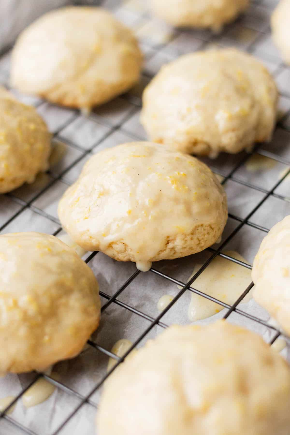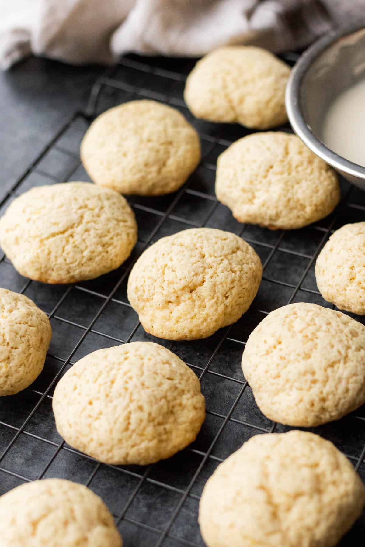 So easy, and it’s a shock I don’t make them every week because I love them so very much. They’re a cakey cookie, not chewy, and they have a lovely crisp exterior. And a vanilla glaze!