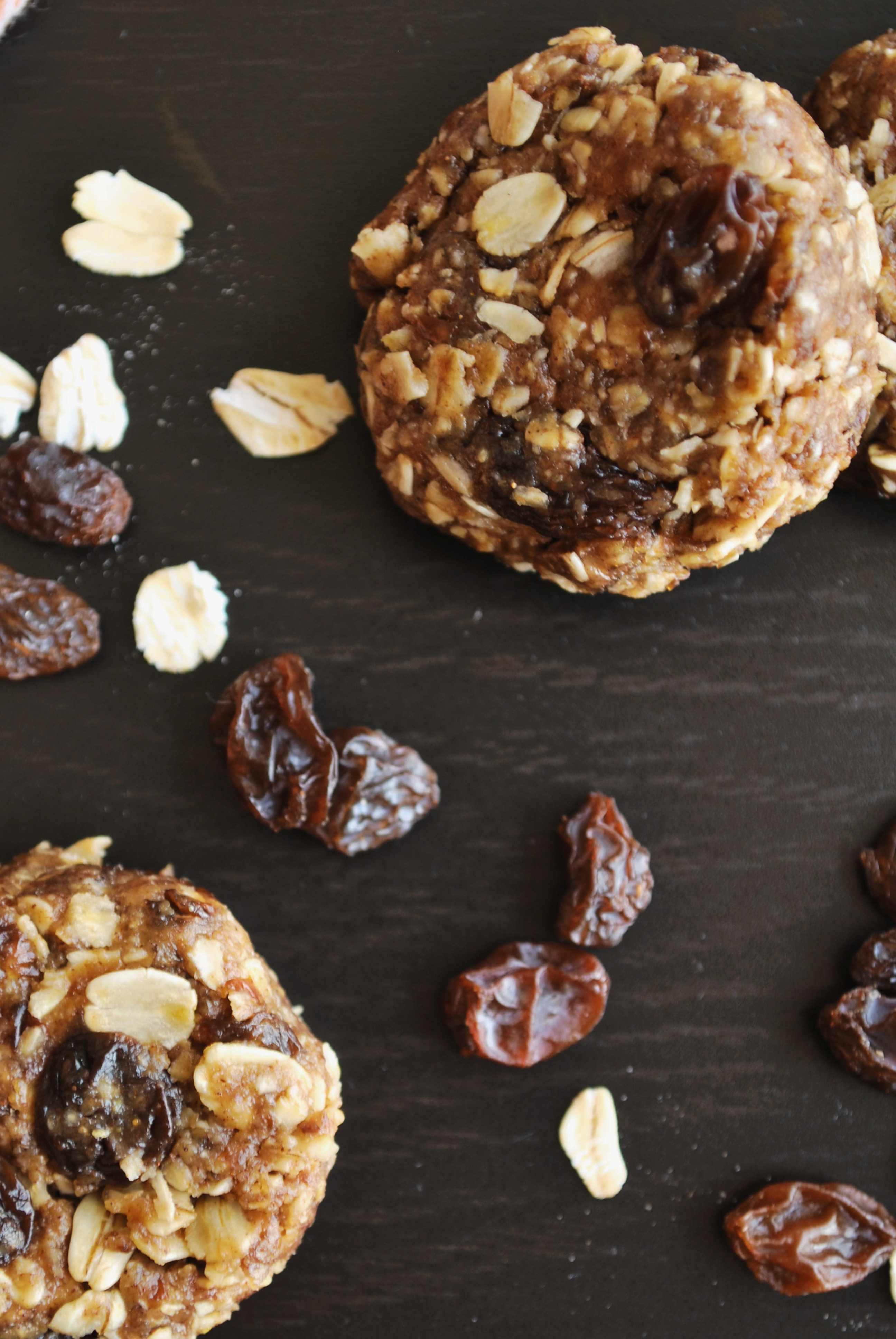 - Mix the remaining 2 Tbsp. oats and 1 Tbsp. raisins by hand. Shape into cookies, and place in the fridge to set.