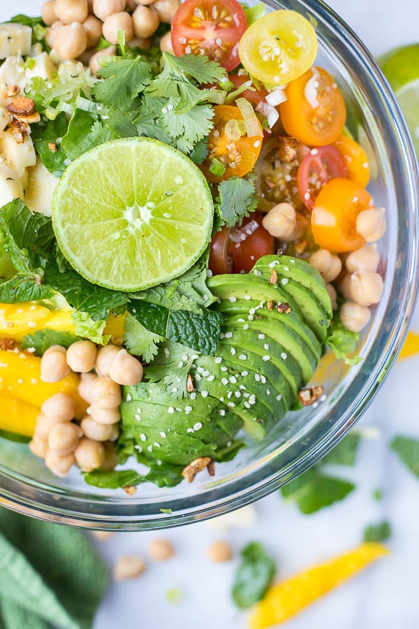 lunch prep tip: Assemble everything (minus the sauce and avocado) the night before. On the day you’re ready to eat it, make the sauce and slice up the avocado, drizzling a bit of lime juice over the top so the avocado doesn’t brown.