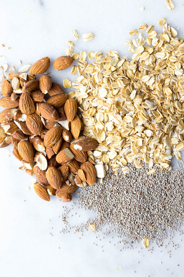We’ll also need some oats! Because there are so little ingredients in this recipe (8!!), the quality of them really matter! That’s why I alwaysalwaysalways use Bob’s Red Mill’s brand. I always have it for breakfast, I always use it in all of my oat-centric recipes here on the blog, and I always use it in my Lemon Chia Seed Granola.