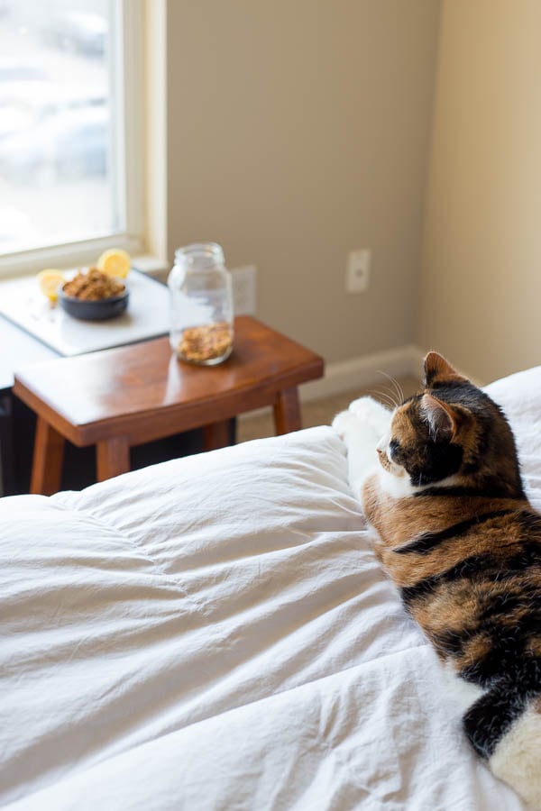 She has THE mouthiest meow when she’s hungry, too. She’ll completely let.you.have it if she hasn’t been fed in the last hour and you walk by her food bowl. And if her persistent meowing doesn’t work, it’s a bite on the foot for you.