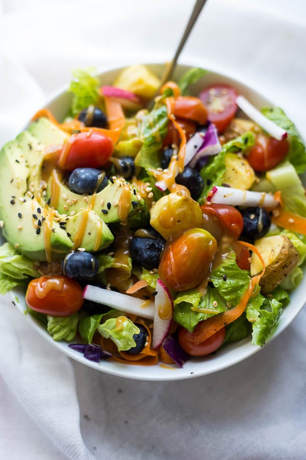 That dressing!!! I just want to drink it omg. Or I guess I could not be weird and have it on this beauuuutiful salad!!