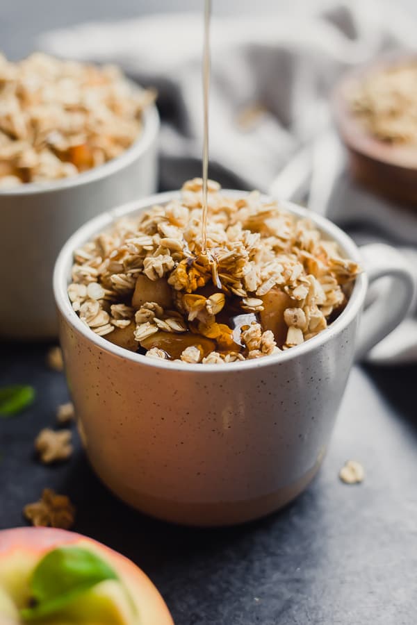 Yes, it’s quick. But it features tender, yet crisp apple pieces, a delightfully crisp granola, and, if you wanna, a nice glug of sweet maple syrup.