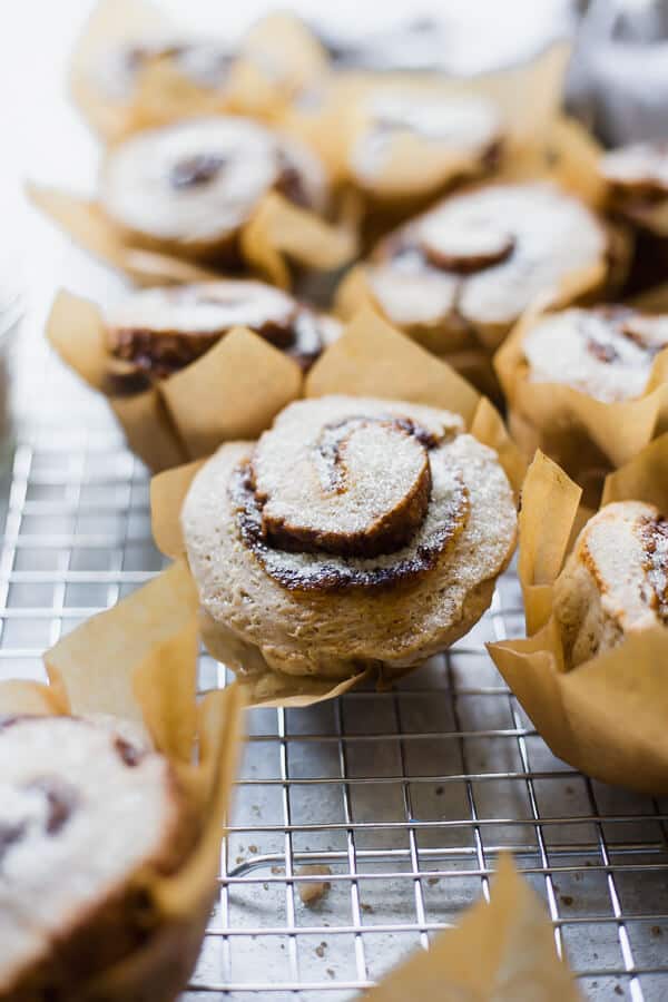 I adore (like, hardcore adore) So Delicious’ Organic Unsweetened Vanilla Coconutmilk. Ahh. It’s great in coffee, but it’s extra great in these cinnamon roll muffins. It’s super thick (or “thiccc” as the cool kids say these days), so it adds a fabulous richness and softness to this dough! Plus, the vanilla flavor lets us omit vanilla extract which has been super $$$$$$$ recently, right?